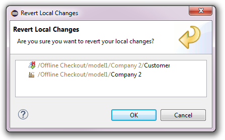 To revert an offline checkout the checkout is selected and the Revert action chosen from its context menu. The following confirmation dialog will pop up: